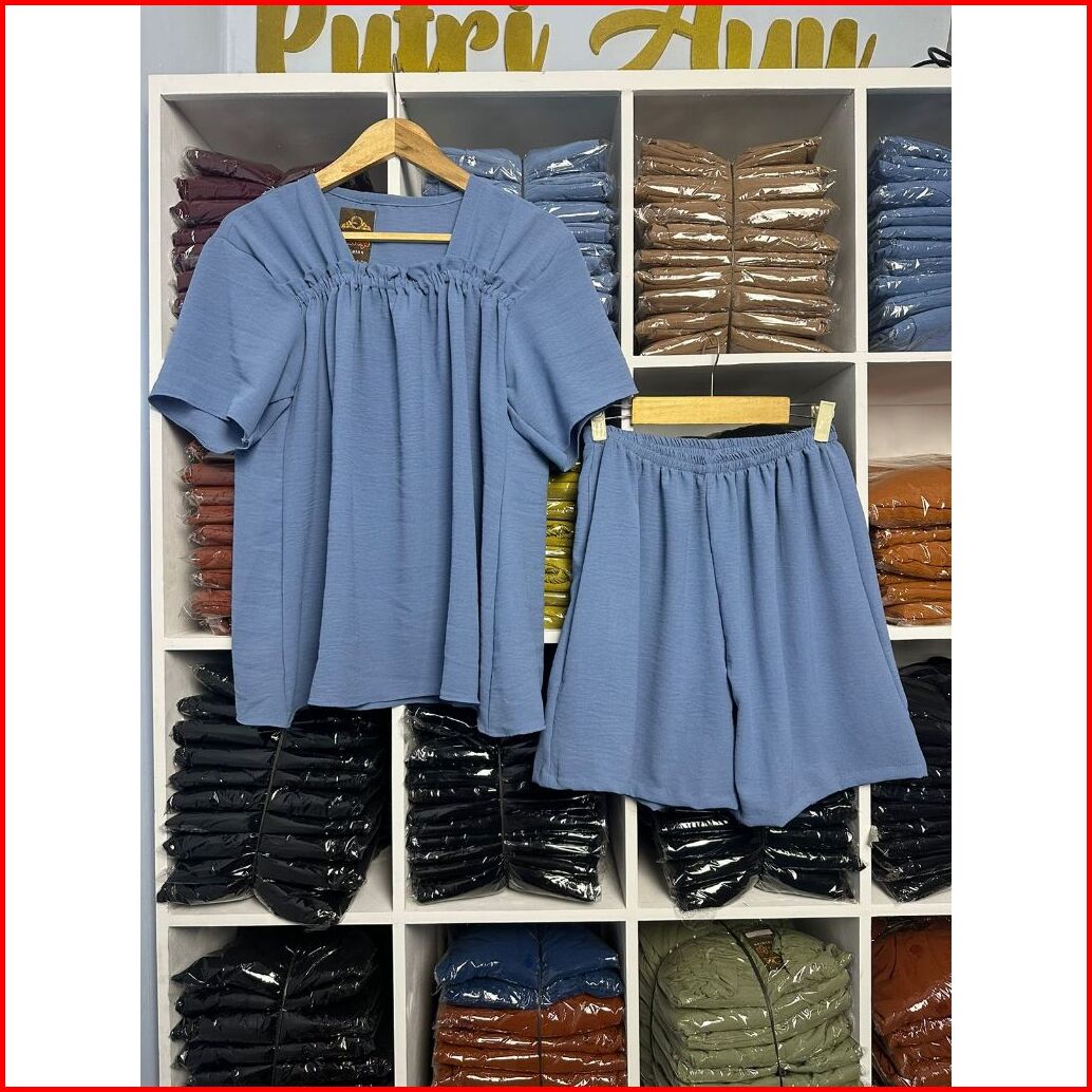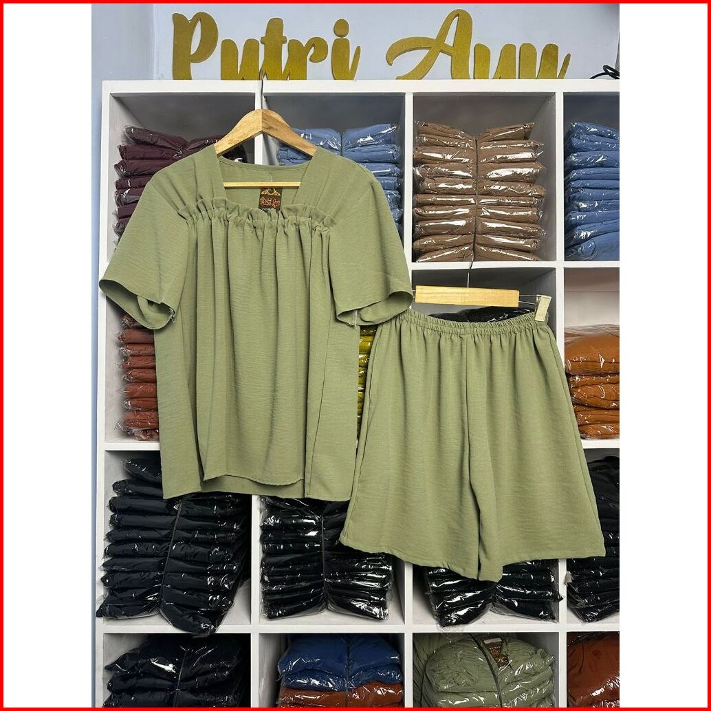 One Set Fuji Lengan Pendek Celana Pendek Crinkle Airflow