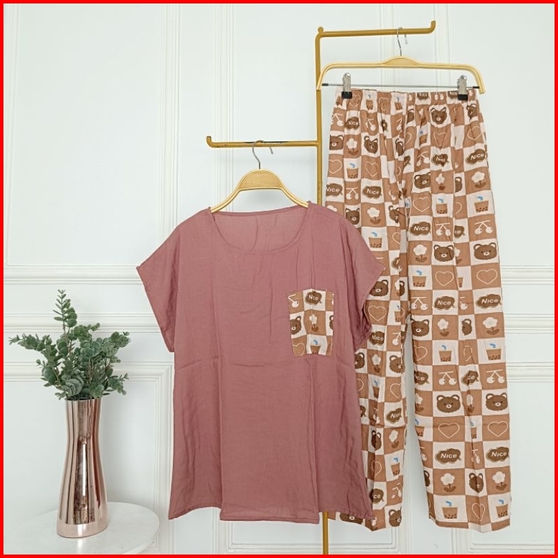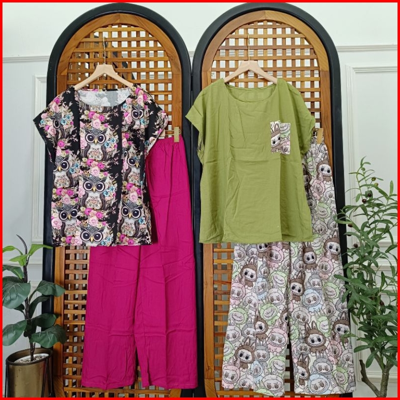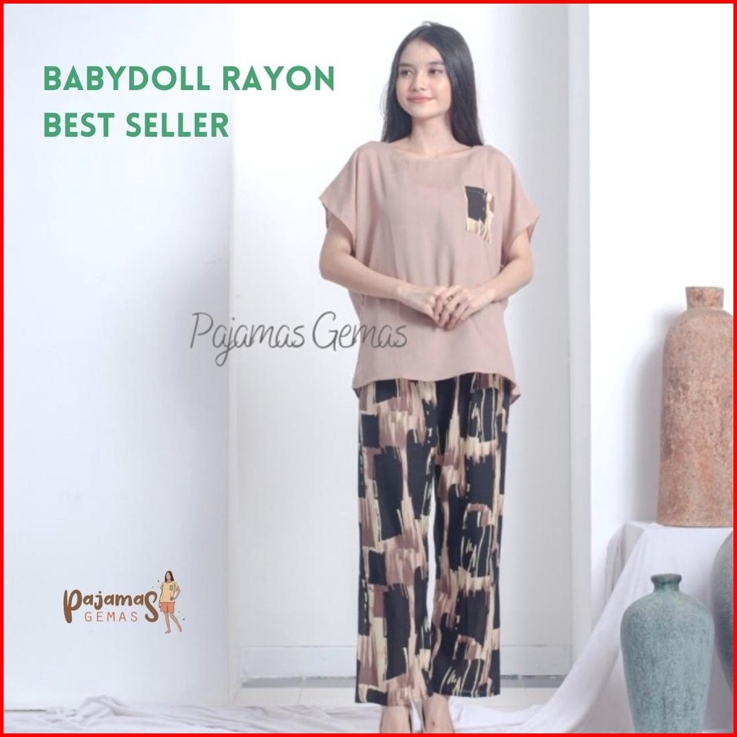 Babydoll Rayon Celana Panjang Standar Pilih Motif Setelan Piyama Wanita