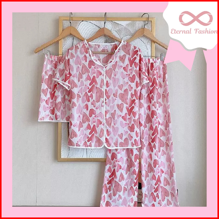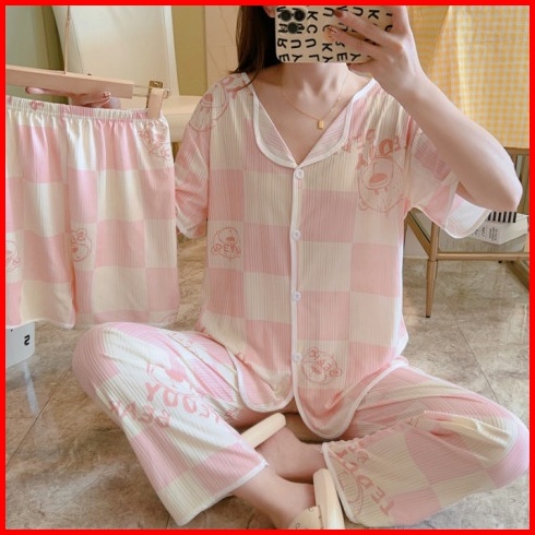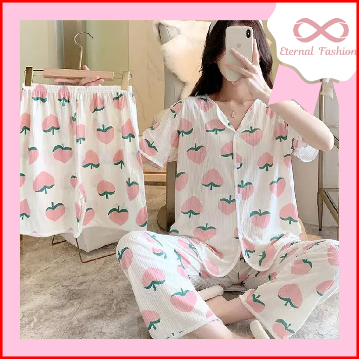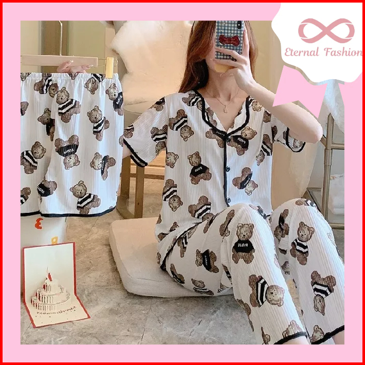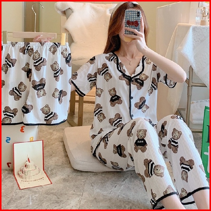 New Arrival Pajamas 3 In 1 Women Baju Tidur Import Wanita Dua Celana Piyama Import Good Quality Baju Tidur 2 Celana Baju