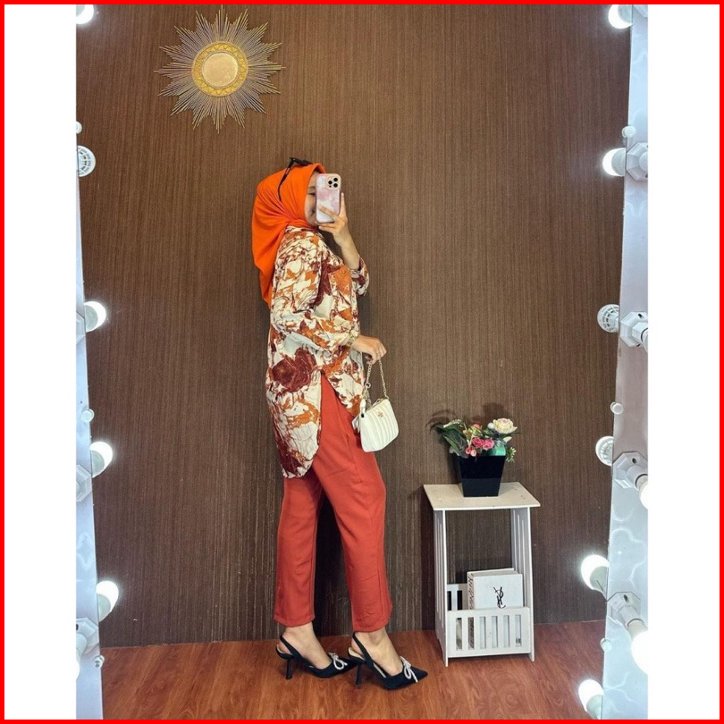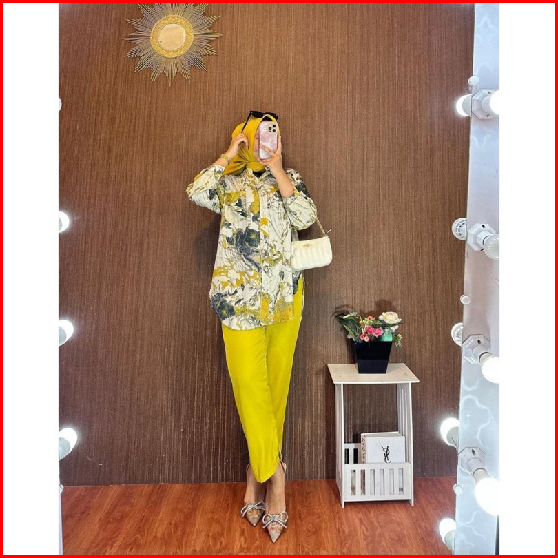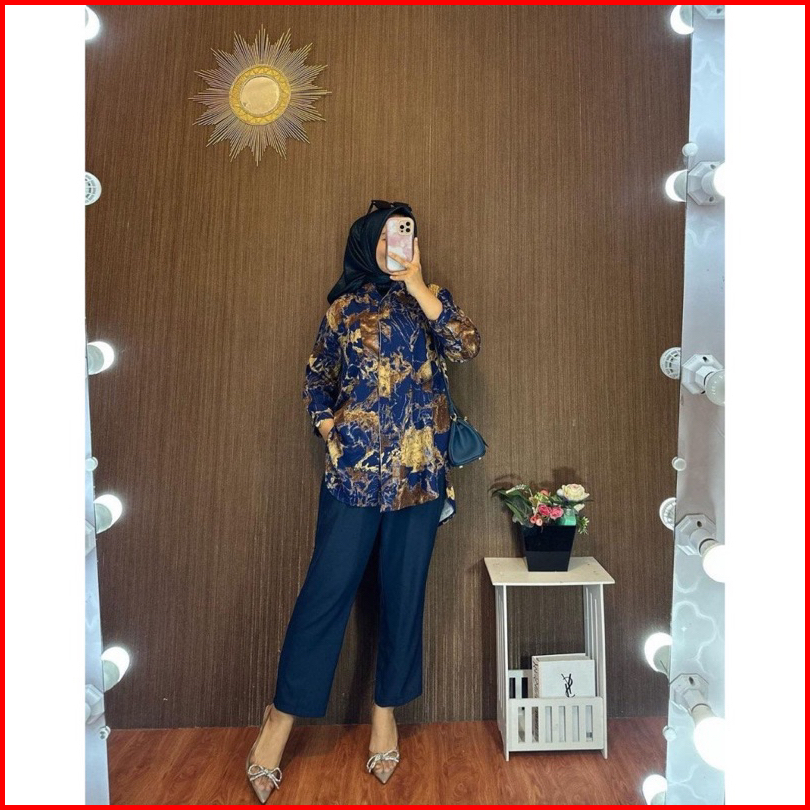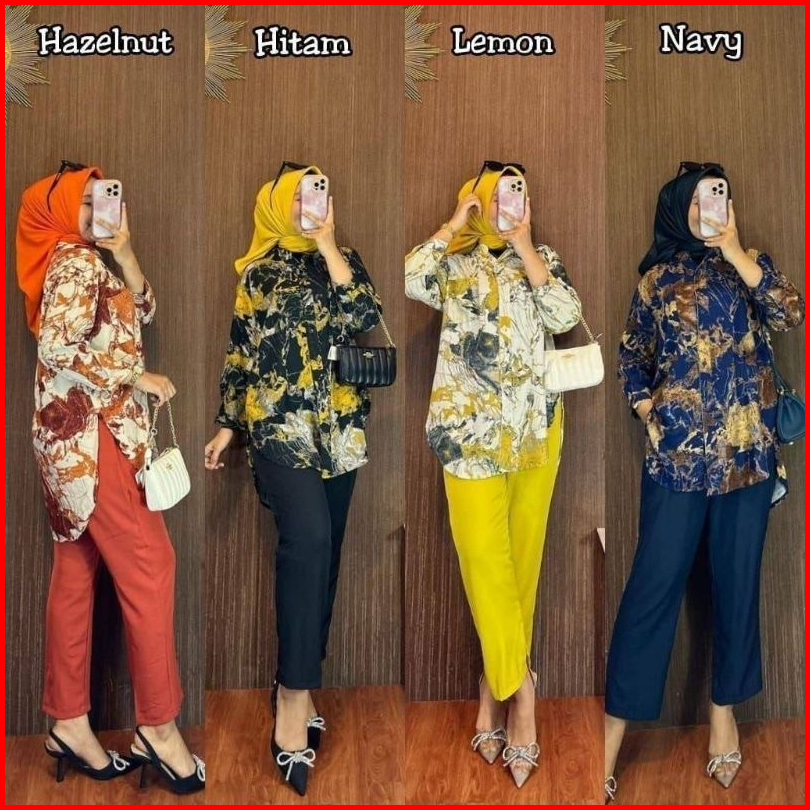 Baju One Set Wanita Motif Marble Nadira Setelan Syakila Premium Setcel Kemeja Kantor Kekinian Viral
