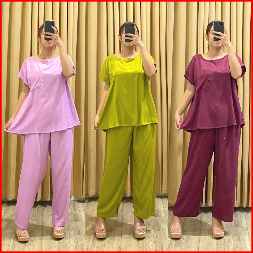 Babydoll Celana Panjang Polos Piyama Babydoll Babydoll Rayon Homewear Murah Setelan Wanita Polos Piyama Wanita Polos Baj