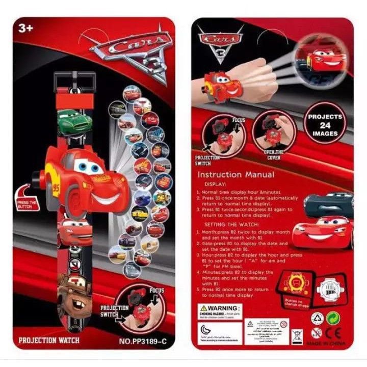 Jam Tangan Anak / Jam Tangan Anak Laki Laki /Jam Tangan Anak Karakter CARS proyektor 24 Gambar