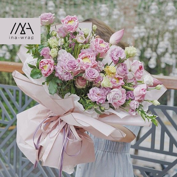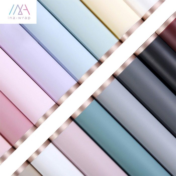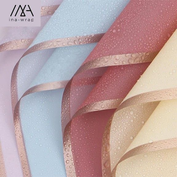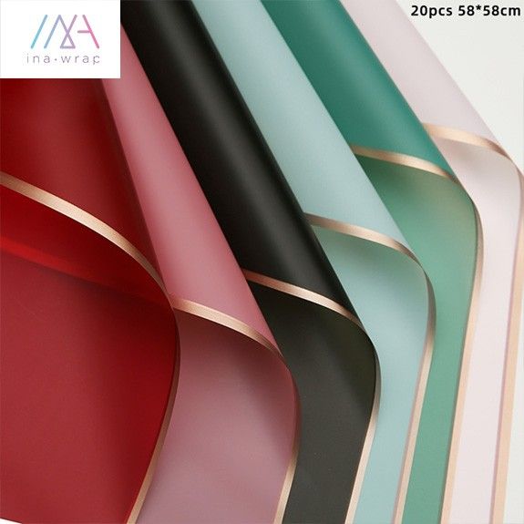 [20 LEMBAR] flower wrapping paper/kertas buket bunga BOPP list gold - Win3