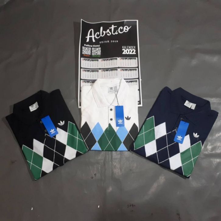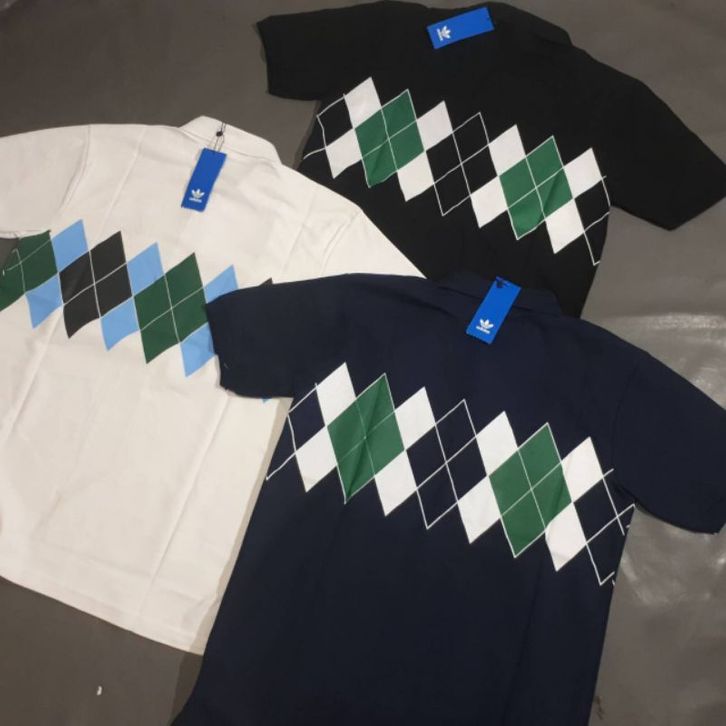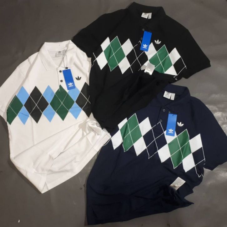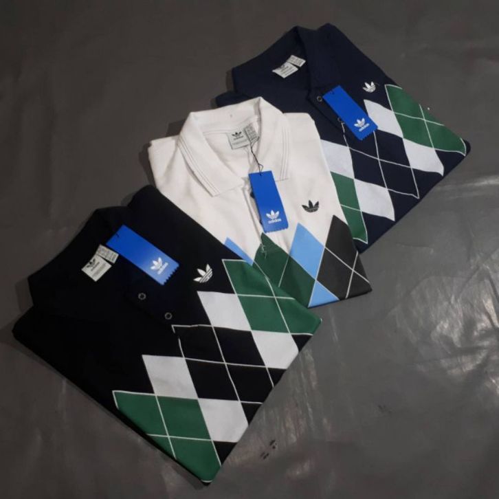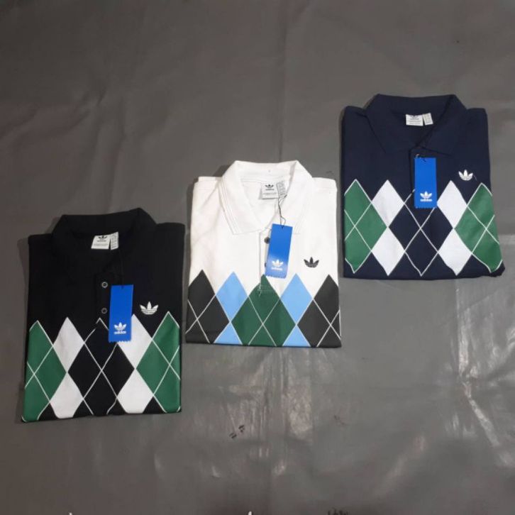 POLO SHIRT ADIDAS ARGYLE FOR MAN FULL TAG KAOS PRIA CASUAL LENGAN PENDEK