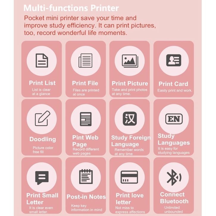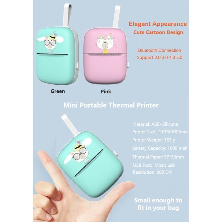 Mini Pocket Portable Bluetooth Printer Thermal Mainan Cetak Foto Handphone Anak Print Resi