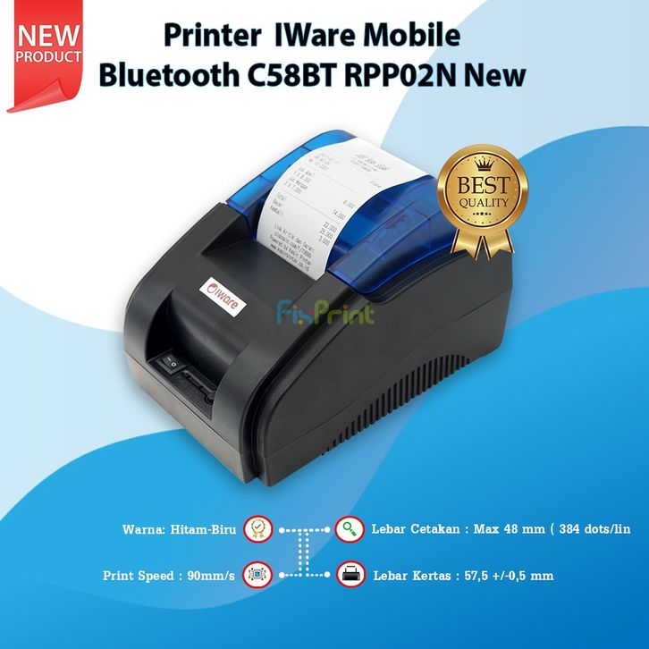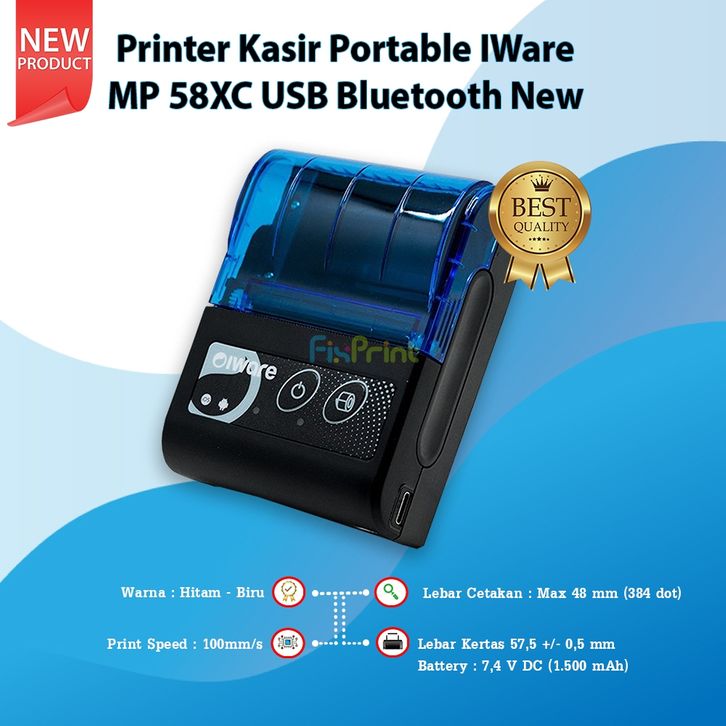 Printer Kasir Thermal Mobile USB + Bluetooth Iware 58BC C-58BT MP-58II MP58X MP-58MPC ZJ5809II XP58IIZ C-5813 Scanner Ba
