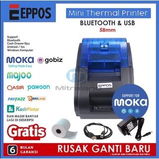 [TERLARIS] Printer Bluetooth Murah POS Thermal 58mm EPPOS & QPOS RPP02 PLUS Android (FREE KERTAS 1 ROLL) bisa cetak resi