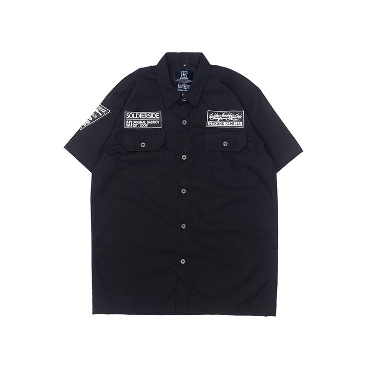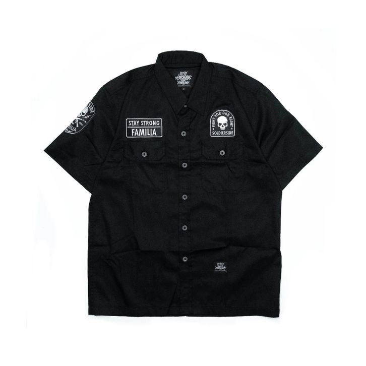 WORK SHIRT "TRIBALZ" - WORKSHIRT PRIA - KEMEJA HITAM PRIA LENGAN PENDEK SKENA