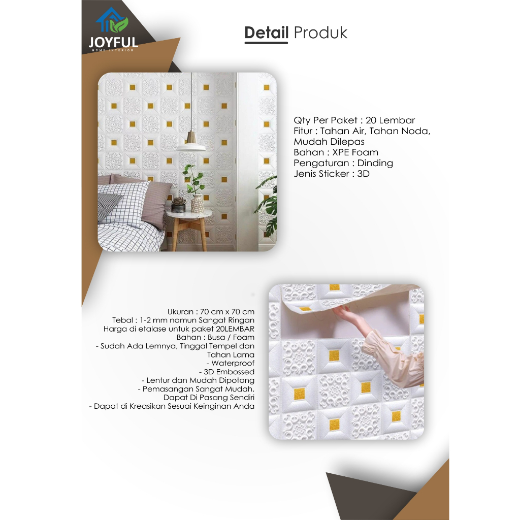 JOYFUL HOME INTERIOR - WALLPAPER DINDING FOAM TIMBUL 3D R61 PUTIH 70 X 70 CM