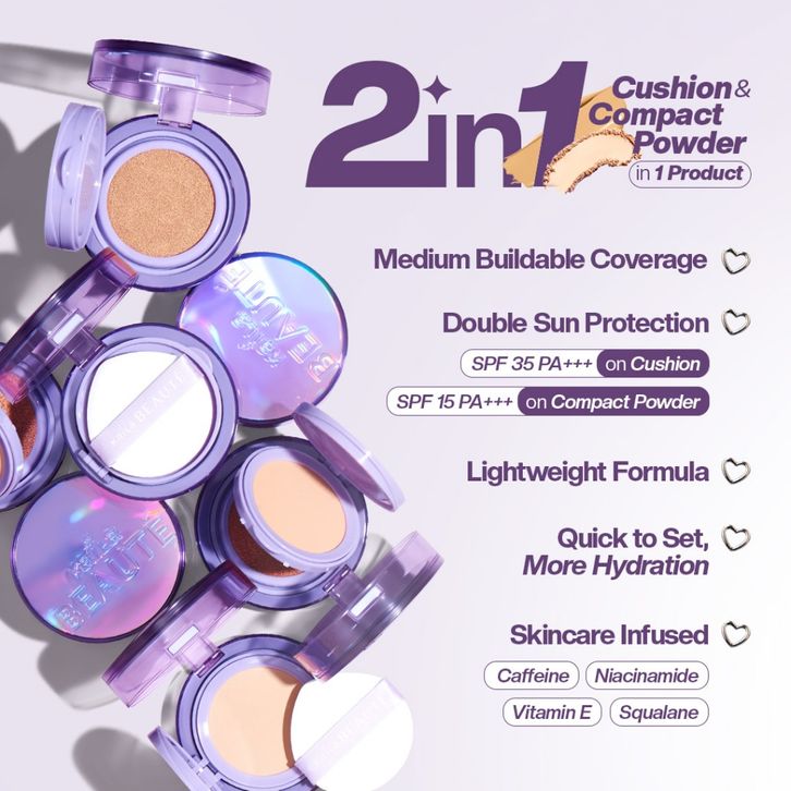 KAILA BEAUTÉ 2IN1 DEW MATTE CUSHION - DOUBLE SPF 15 & 35 PA+++ NIACINAMIDE MEDIUM COVERAGE TERLARIS