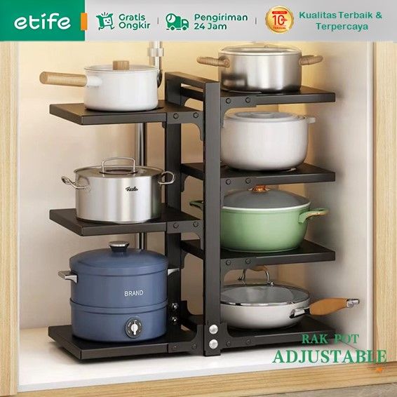 Rak Panci Susun Rak Bawah Wastafel Rak Dapur Stainless Steel (3/4/5 Tingkat)