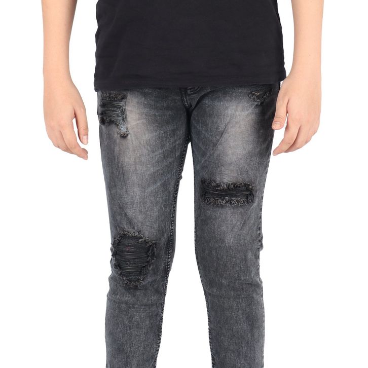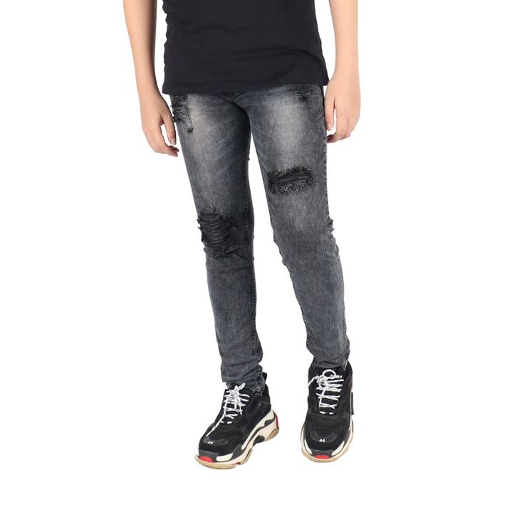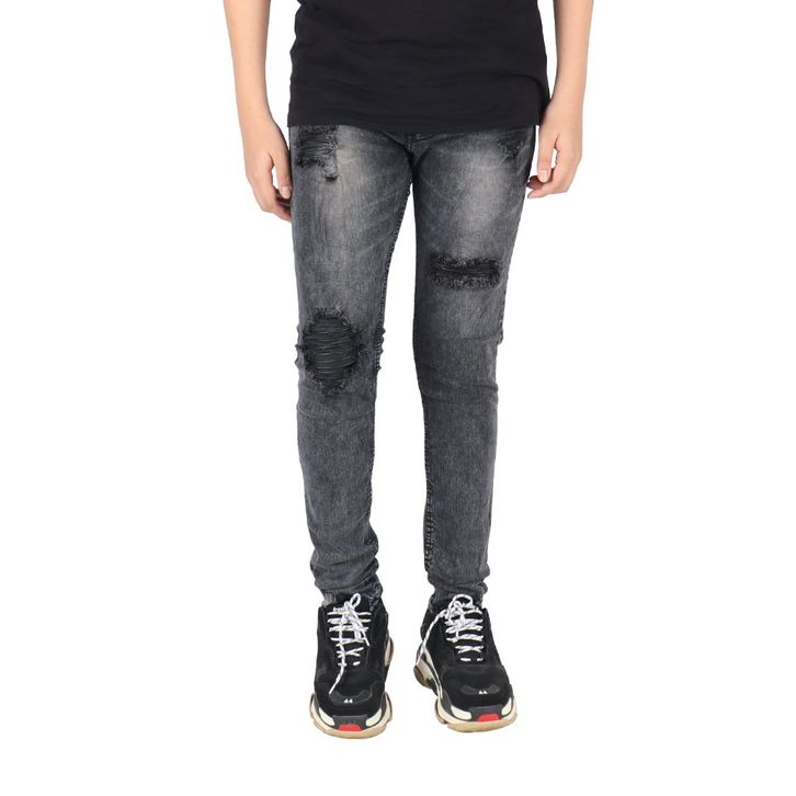 Celana Jeans Pria Elegan? Weird Jeans - Snow Black - Strech Ripped Leather