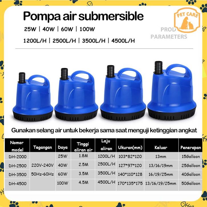 Pompa Air Celup Mesin Filter Submersible Water Pump Watt Kecil Kolam Aquarium Akuarium Aquascape Ikan Besar Mini Koi