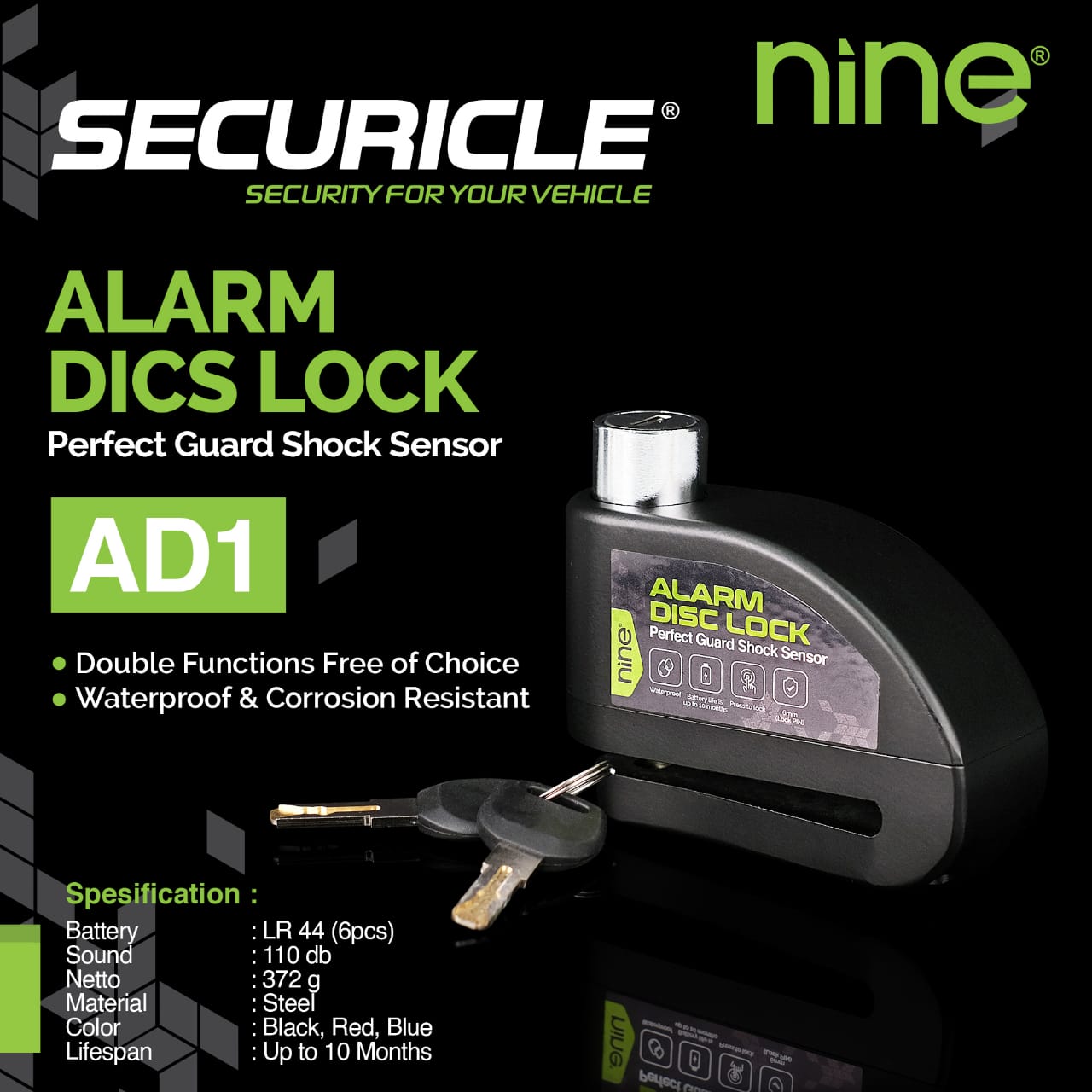 GEMBOK MOTOR ALARM DISC CAKRAM ANTI MALING 110 DB 9NINE SECURICLE AD1
