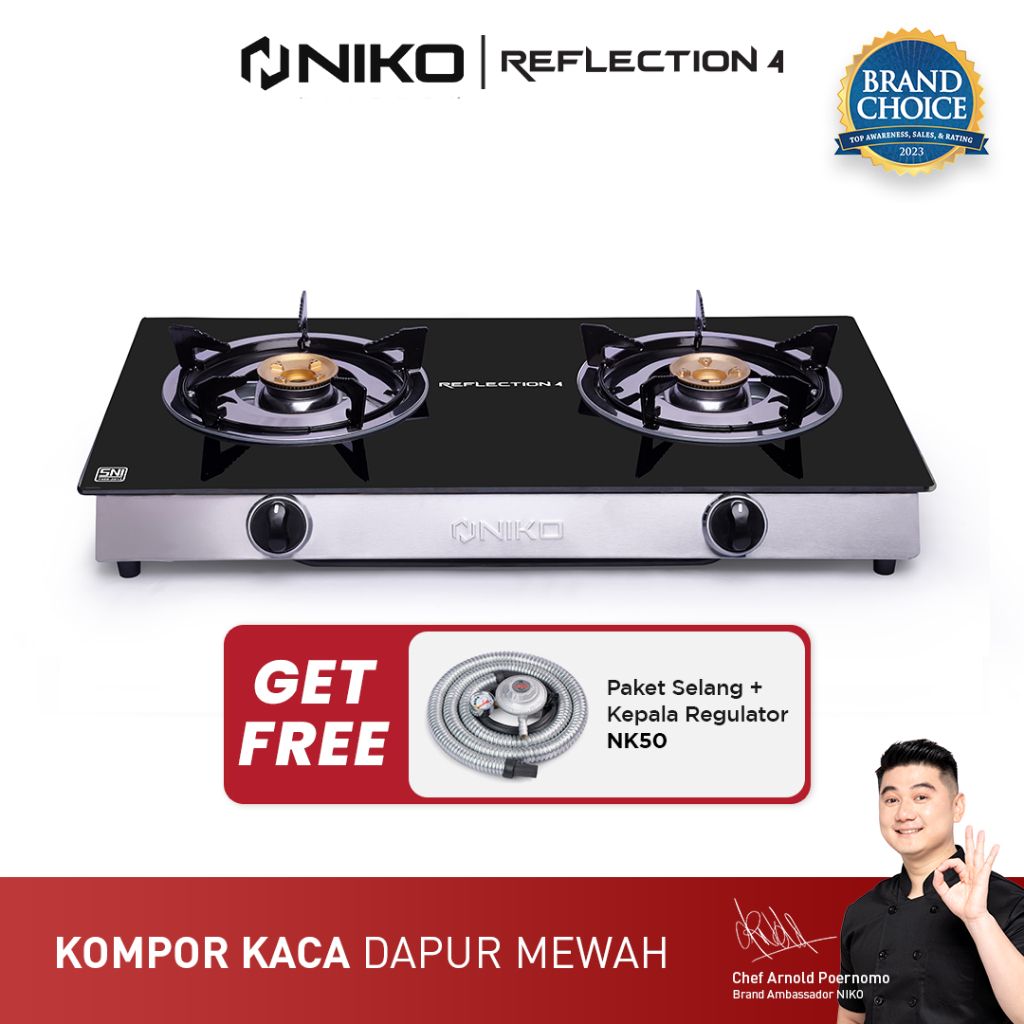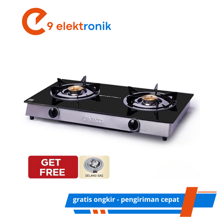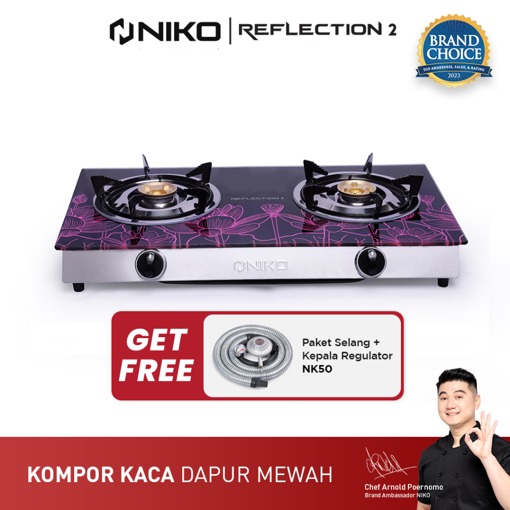 KOMPOR GAS NIKO 2 TUNGKU + SELANG REGULATOR REFLECTION SAKURA TITANIUM FLIP PLUS KITARO BLACK PLAT KACA MURAH