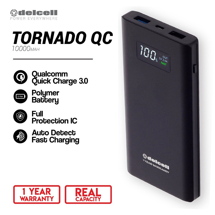 Delcell Tornado Power Bank 10000mAh Real Capacity Polymer Battre Digital Display