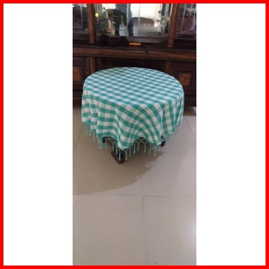 Taplak Meja Makan Bulat 4 Kursi Diameter 140 Cm Bahan Kain Kotak Kotak Rumbay