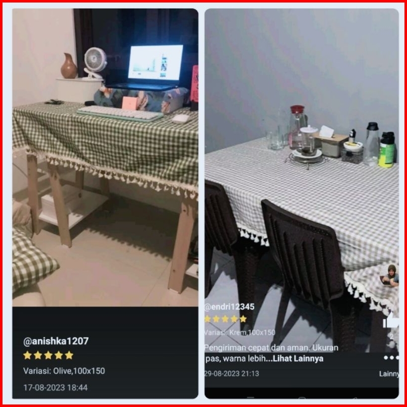 Terbaru Taplak Meja Makan Rumbai Motif Kotak Kotak 1cm