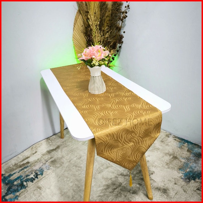 Taplak Meja Tamu Anti Air Table Runner Alas Meja Makan Tebal Kuat Tassel Rumbai