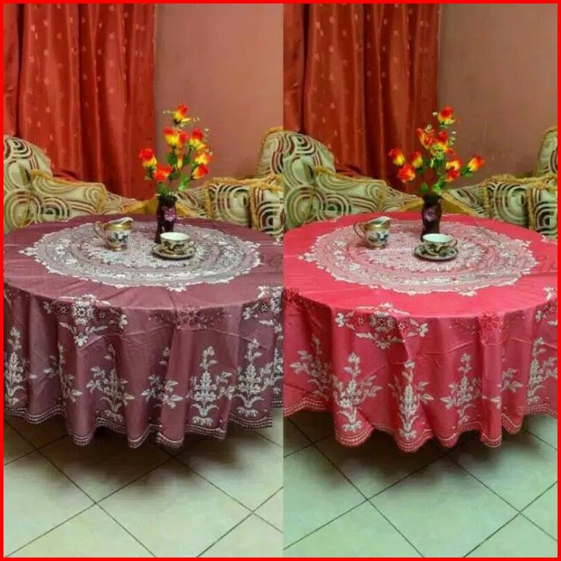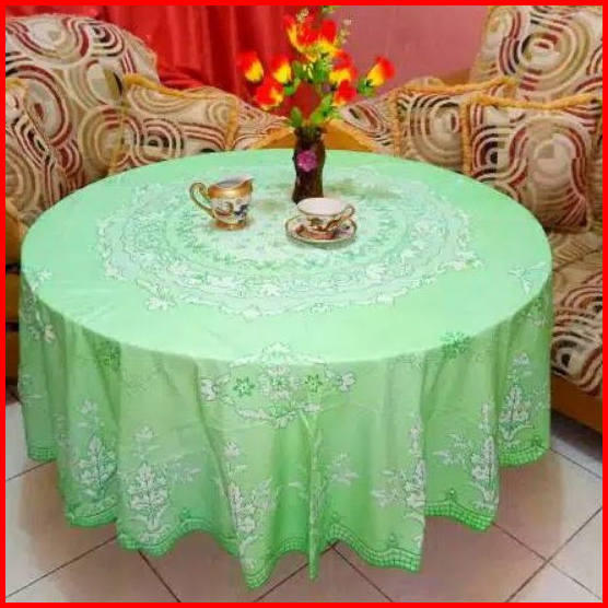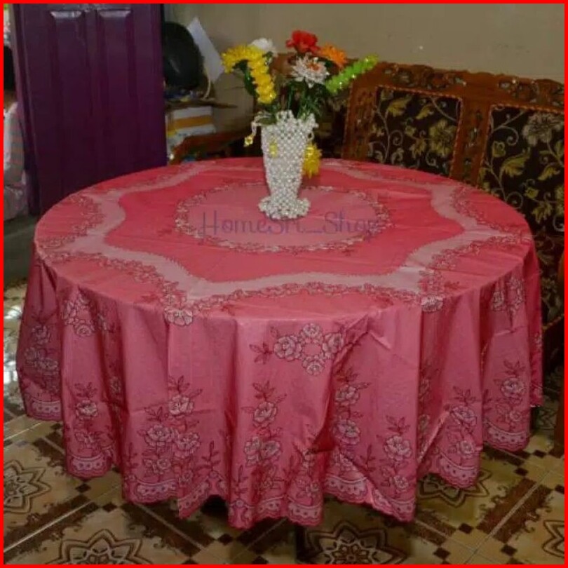 Taplak Meja Makan Vinyl Lace Bulat 180cm Taplak Meja Makan Besar 6 Kursi