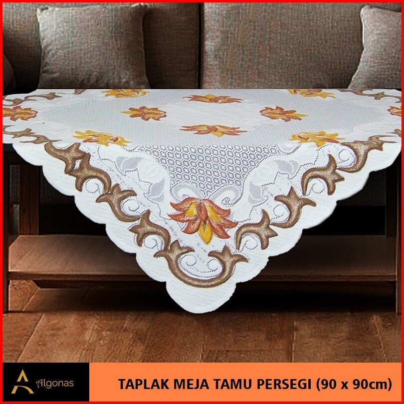 Taplak Meja Tamu Persegi Algonas Motif Bunga 3d Tebal 90x90