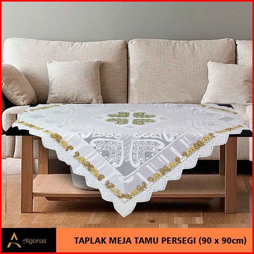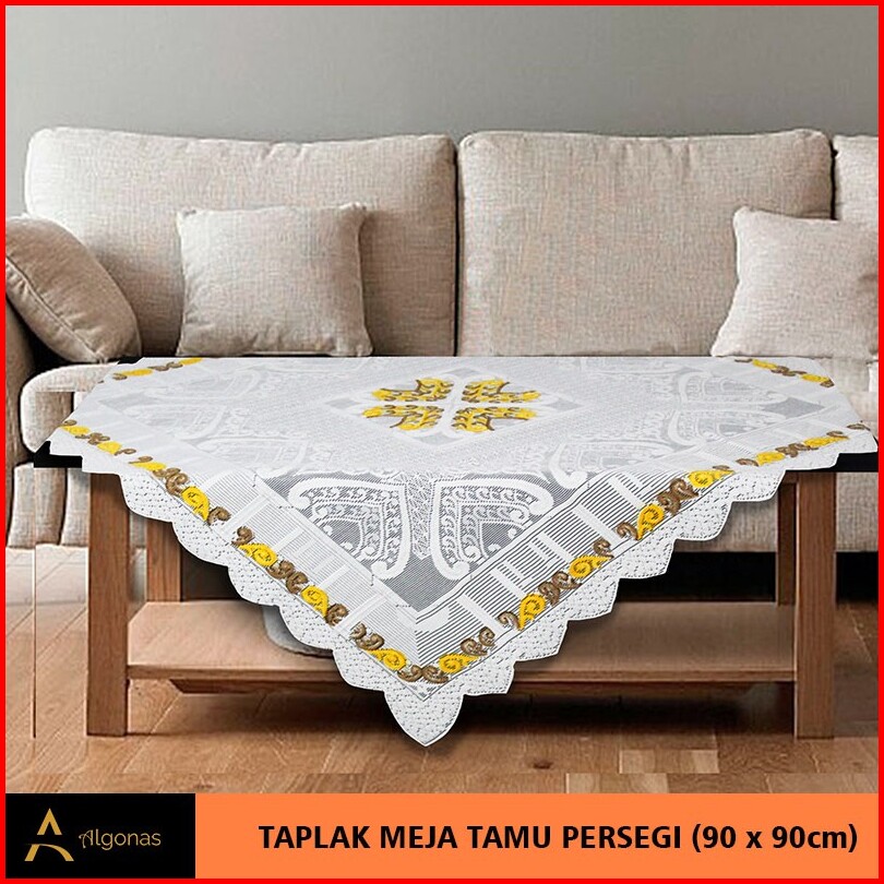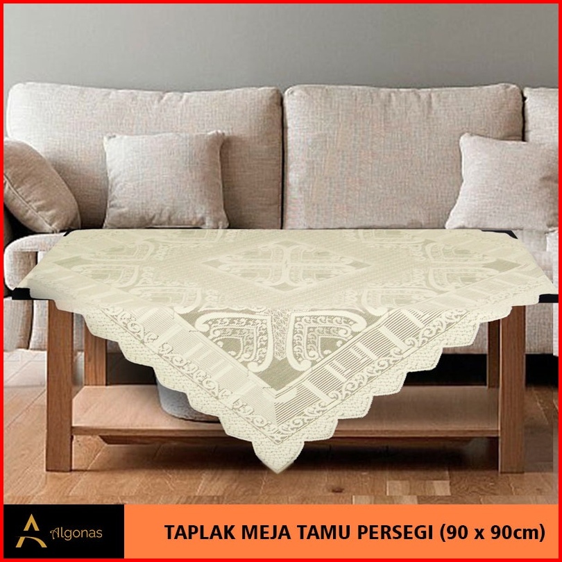 Taplak Meja Tamu Persegi Empat Motif Pilar Warna Cream 90x90