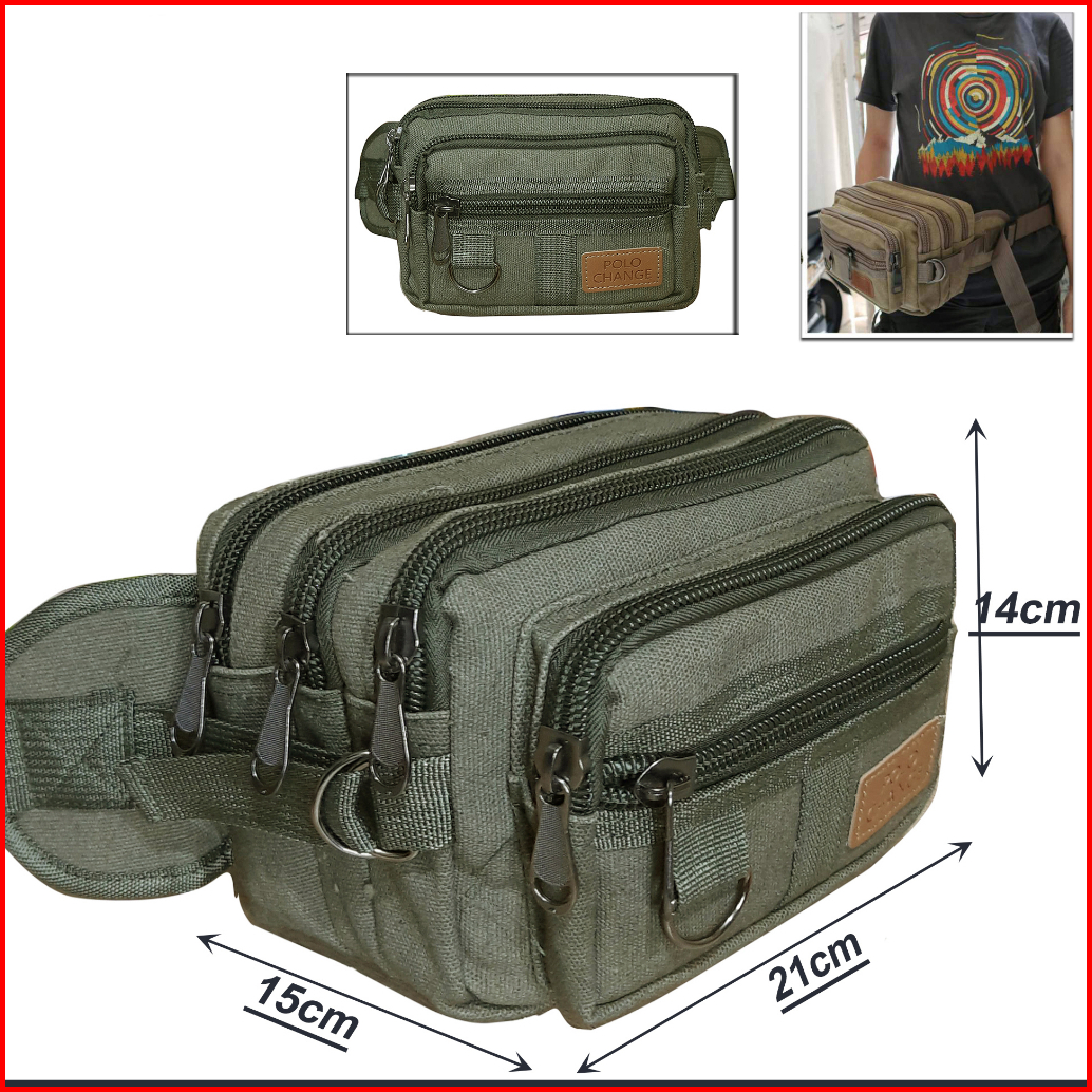 Tas Pinggang Pria Waistbag Import Kanvas Polo Change 8911