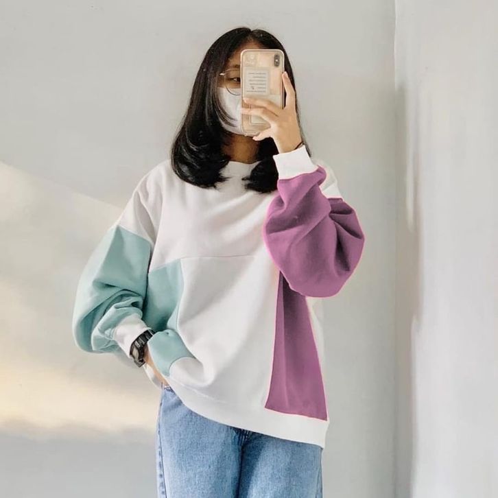 Sweater Oversize Wanita Fashion Pakaian Reglan Combie Color Remaja Wanita Korean Style Kekinian Bahan Fleece