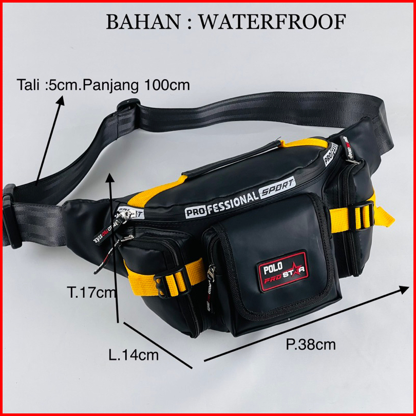 Tas Pria Anti Air Waistbag Tas Pinggang Tas Selempang Terbaru Original Polo Prostar Waterproof