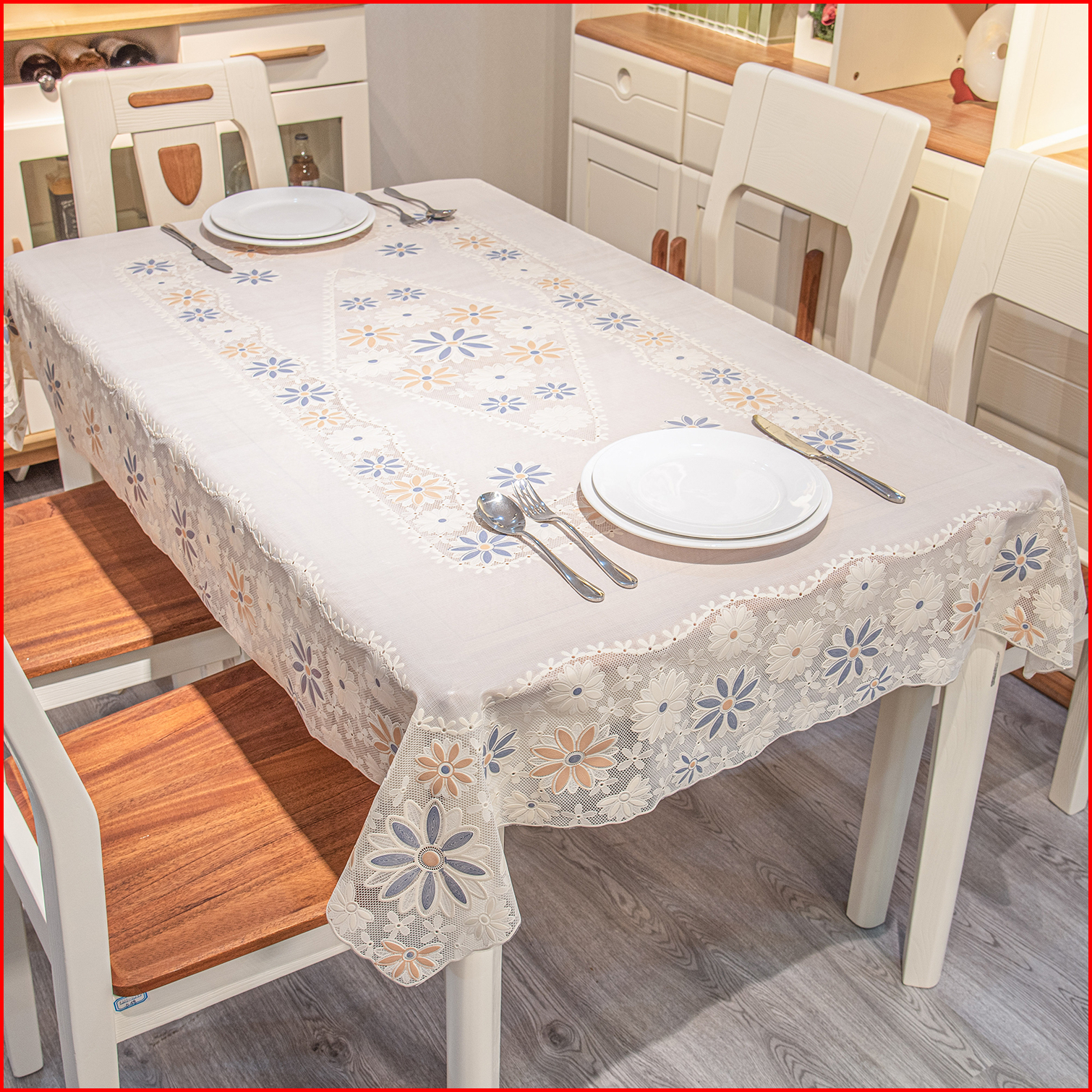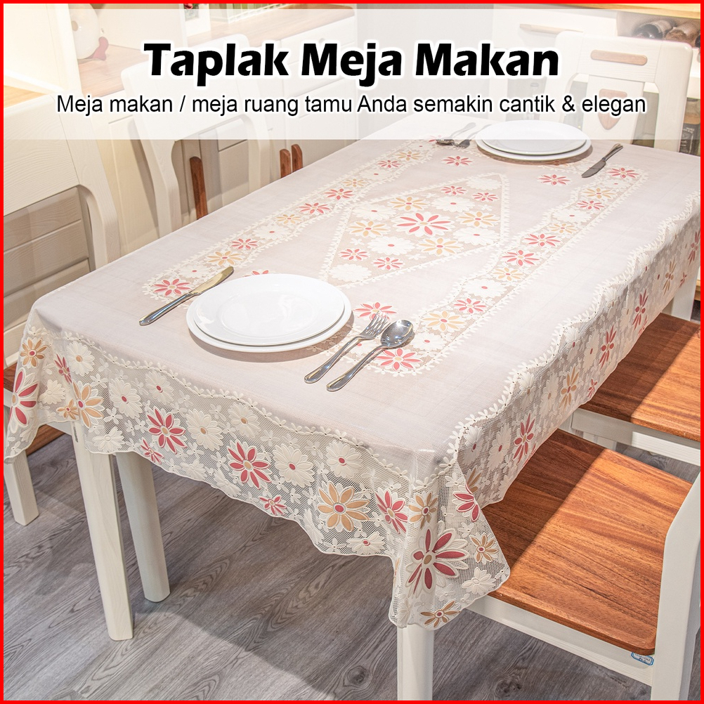 - New Taplak Meja Makan Anti Air Anti Minyak Ukuran 120x170cm Motif Bunga Mewah Modern Bahan Pvc Tebal D40-b Taplak Ruan