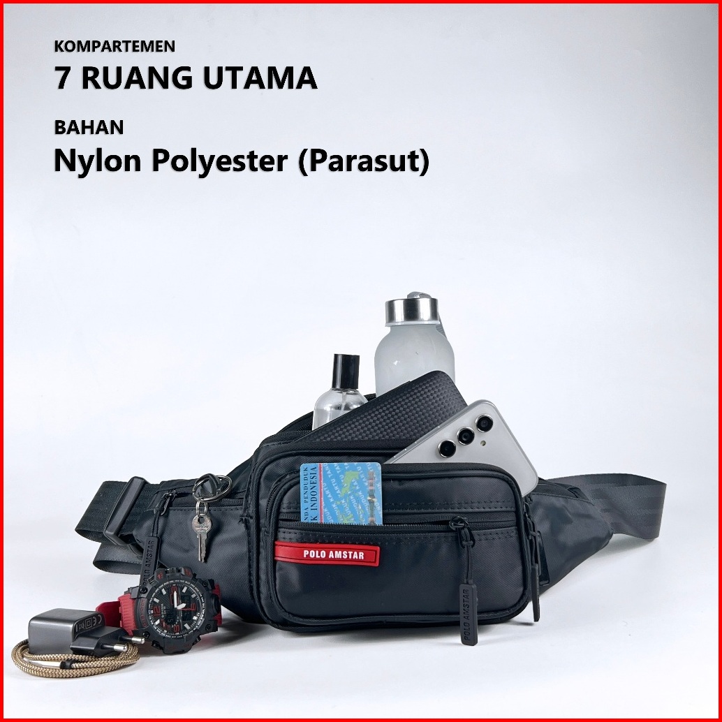 Tas Selempang Pria 7 Ruang Waistbag Polo Amstar Parachute Fortun Slingbag Stylish Tas Pinggang