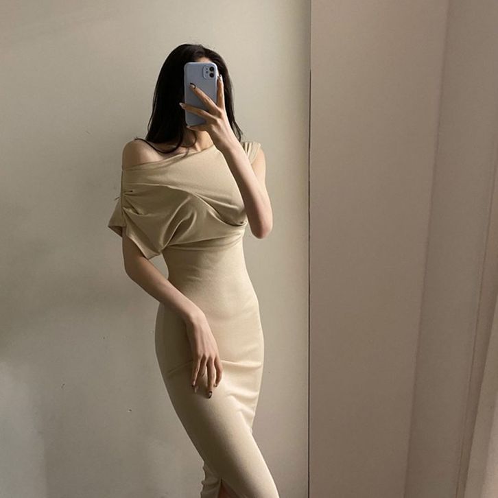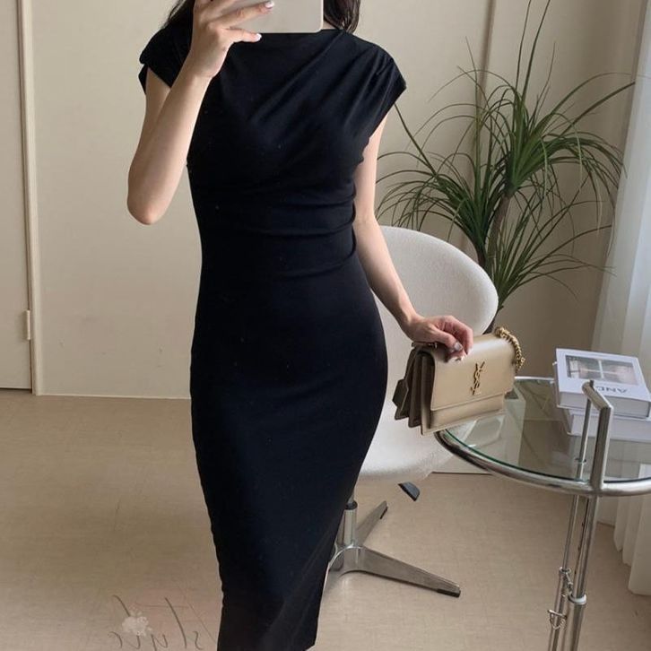 Dress Cewek Midi Dress Perempuan Slim Fit Tanpa Lengan Skinny Rok Ketet Kasual Formal Pesta Black Apricot Size M L