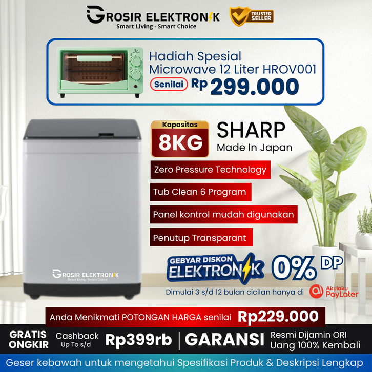 1 Tabung 7KG [ ES-M7000P , 1 Tabung 7.5KG [ ES-F950P ], 1 Tabung 8KG [ ES-M8000P ], 1 Tabung 11.5KG J-Tech Inverter [ ES-M1150XT ], 1 Tabung 15KG J-Tech Inverter [ ES-F1500X ] ]