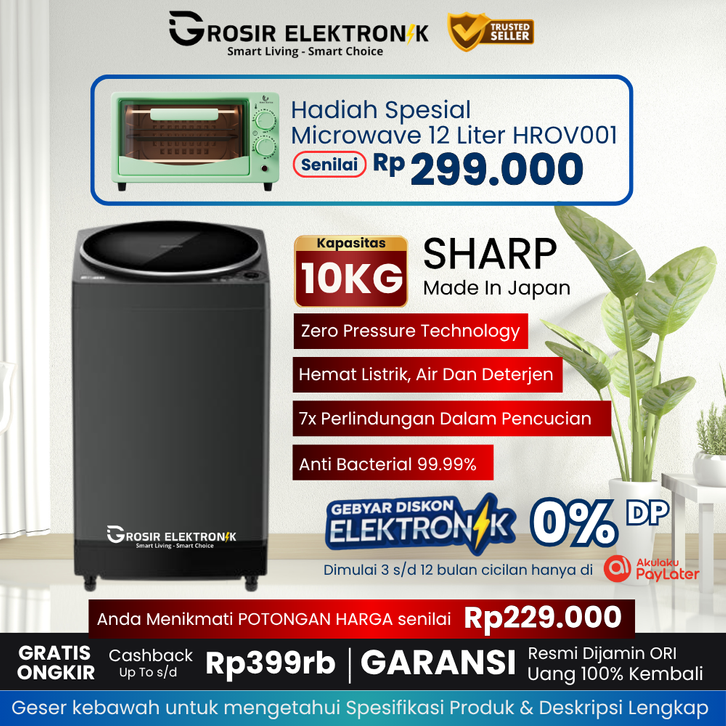 GRATIS ONGKIR - SHARP Mesin Cuci 1 Tabung 10 KG [ SHARP ESM-09TSA ] - mesin cuci sharp 10kg - TL1