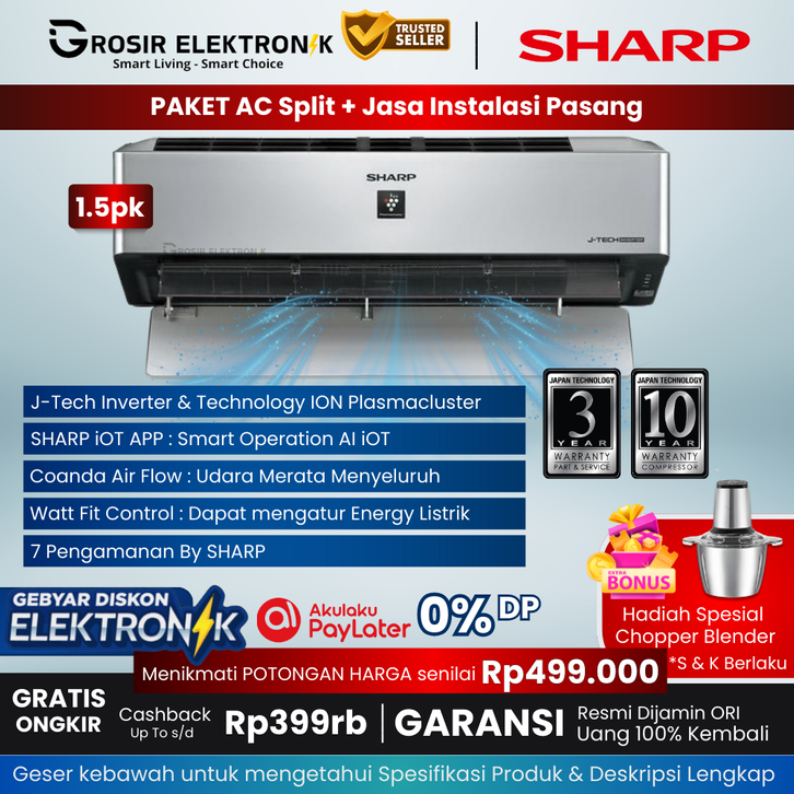 [ +PASANG ] - AC 1.5PK Inverter J-Tech Plasmacluster Smart Wifi [ AH-XPVXY-1pk - 1.5pk ] - ac sharp 1pk - A1PK - STGE