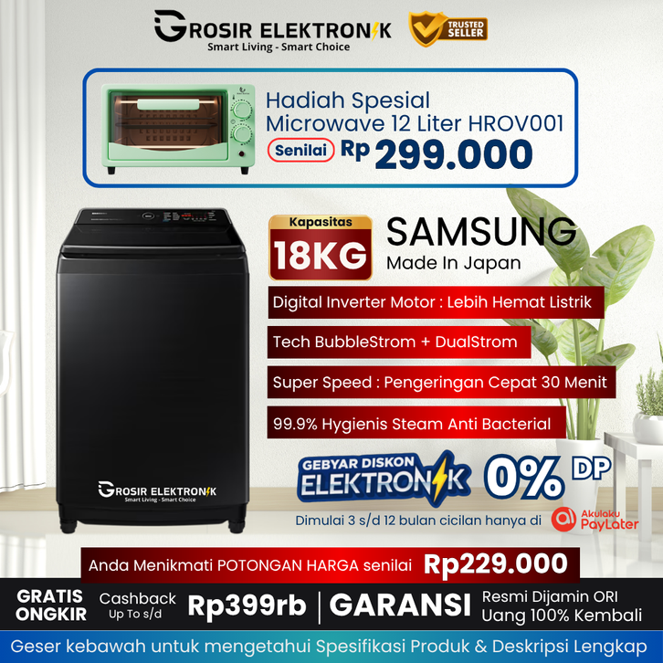 GRATIS ONGKIR - SAMSUNG Mesin Cuci 1 Tabung 18KG [ WA-00C ] - mesin cuci samsung 12kg / mesin cuci jumbo - STGE - TL1