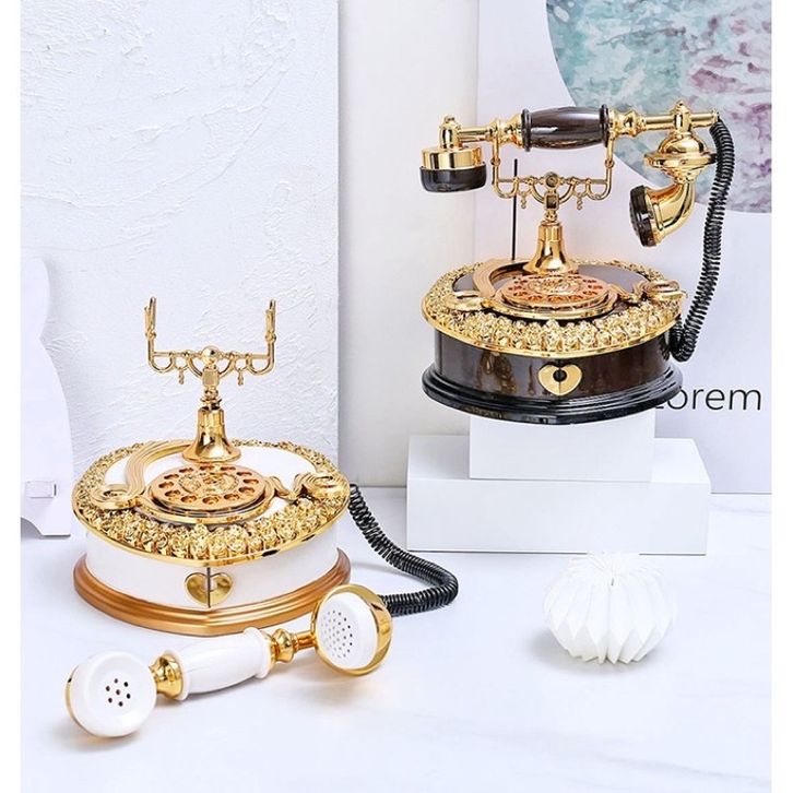 Dekorasi Pajangan Telepon Kotak Musik Kado Unik Vintage Shabby Klasik Kotak Musik