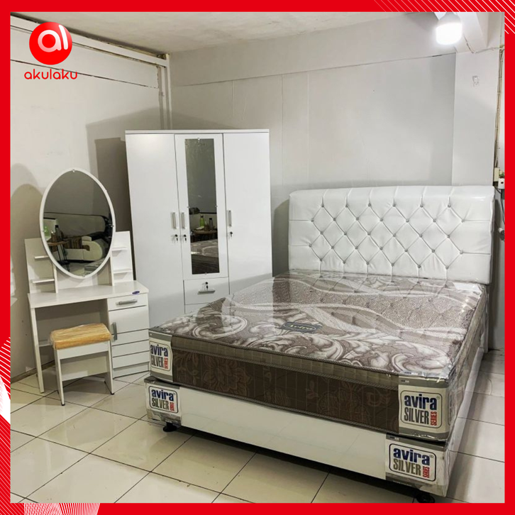 Paket Full Set Lemari Pakaian 3 pintu Springbed Meja Rias Divan box Minimalis Set Kamar Tidur