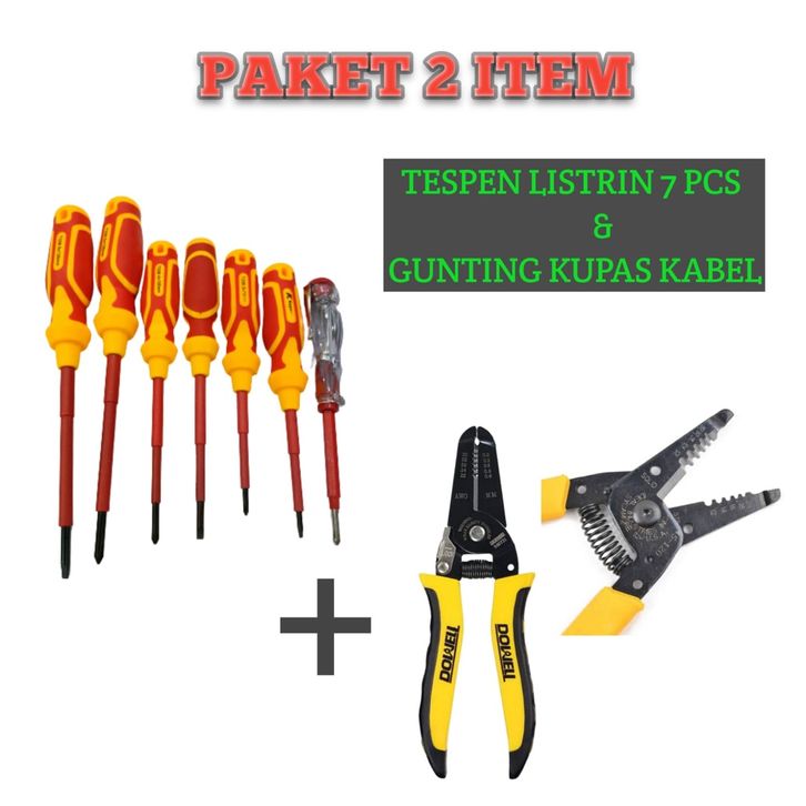 Paket Obeng Set Tester Tegangan Listrik Obeng Tespen Obeng Listrik Magnet Set 7 Pcs Dan Tang Kupas Kabel 3In1 Cabel Poto
