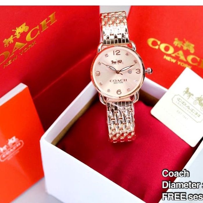 Jam Tangan Cewek Coach Stainless Elegan Tanggal Aktif Paket Include Box Paperbag Diameter 35 Mm Fashion
