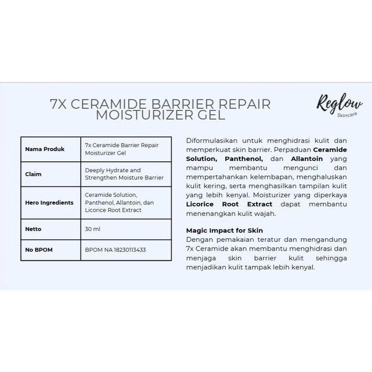 NEW PRODUCT Reglow Moisturizer Gel 7X Ceramide Untuk Kulit Sensitif Kemerahan Aman Bumil Busui