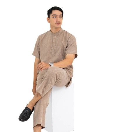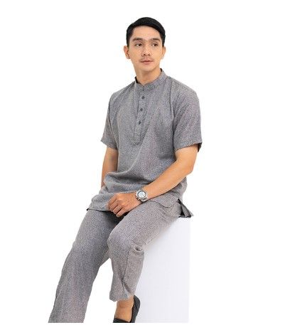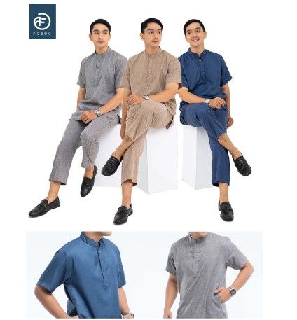 Baju Koko Setelan Pria Dewasa Kemko Set Lengan Pendek Motif Polos Koko Setelan Yusuf Fobdg