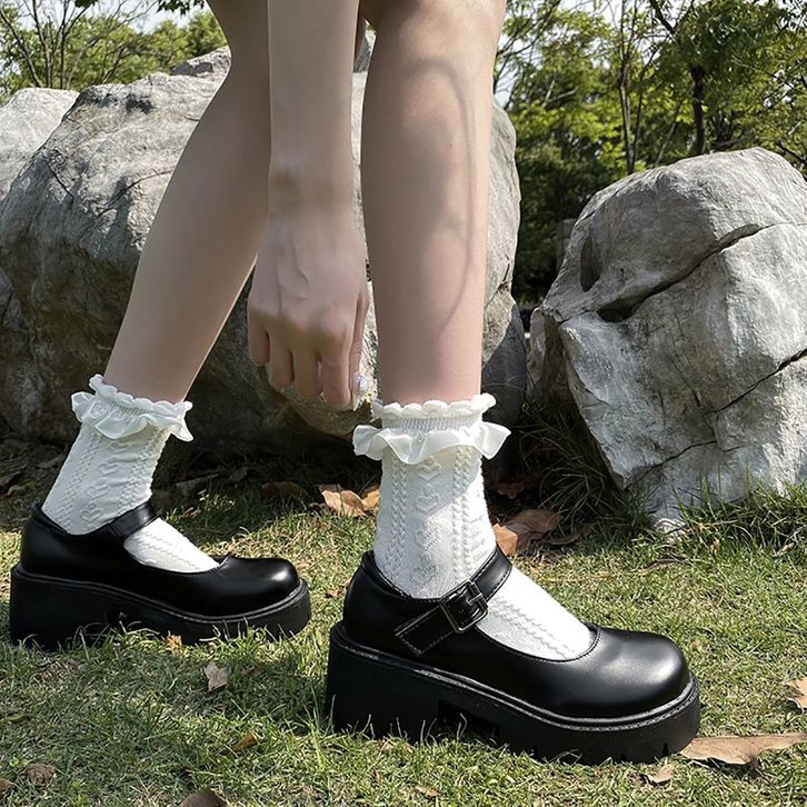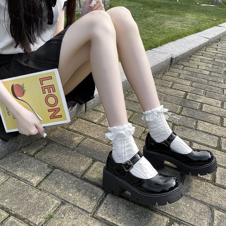 Sepatu Hak Lolita Wedges Cewek Fantofel Aesthetic Perempuan Formal Kasual Pesta Kerja Bahan Kulit Sintetis Premium