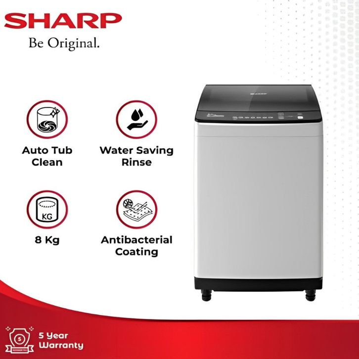 (FREE ONGKIR JAWA BARAT JABOTABEK) MESIN CUCI SHARP 1 TABUNG 8KG ES-M8000P-GG MEGAMOUTH SERIES GARANSI RESMI