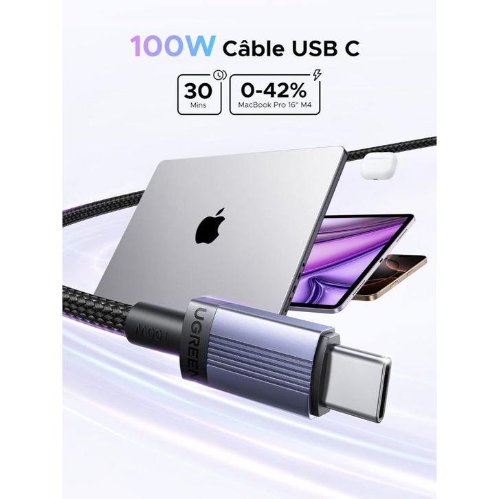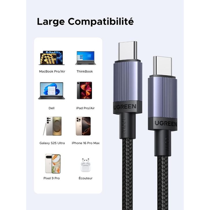 UGREEN Kabel Type C to Type C 5A 100W 240W Smart E-Marker Chip for SAMSNG iPhone 15 16 17 iPad Macbook