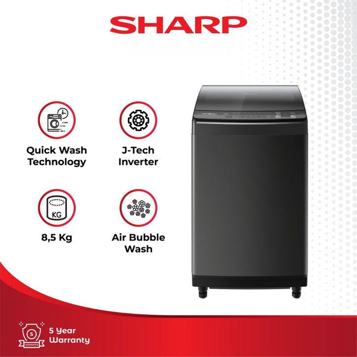 (FREE ONGKIR JAWA BARAT JABOTABEK) MESIN CUCI SHARP 1 TABUNG 8.5KG ES-M8500XT-SA MEGAMOUTH SERIES INVERTER GARANSI RESMI