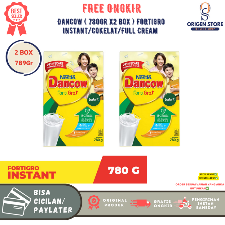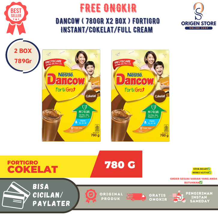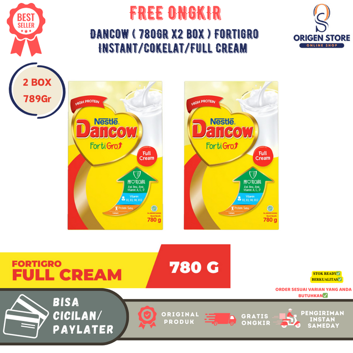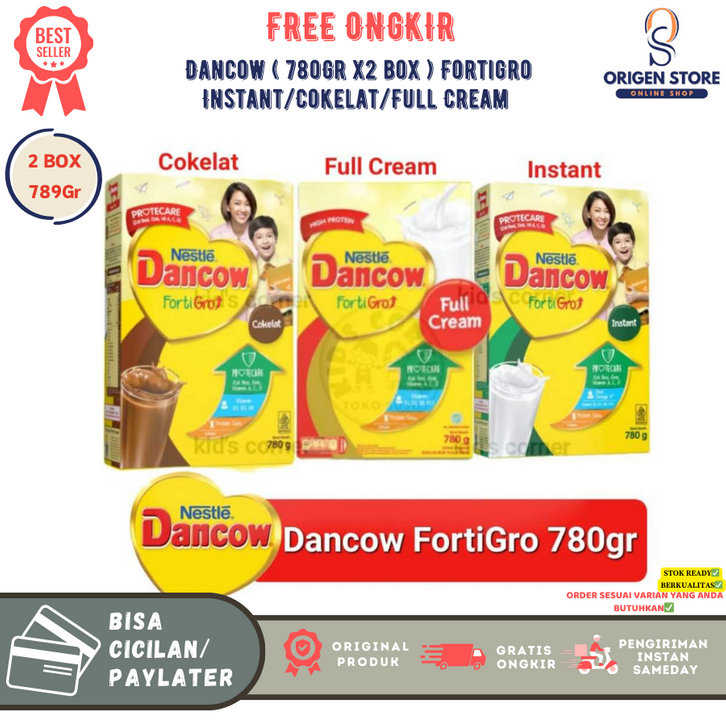 [2 Box] Susu Dancow Fortigro 780gr Rasa Instan Vanila, Cokelat, Full Cream