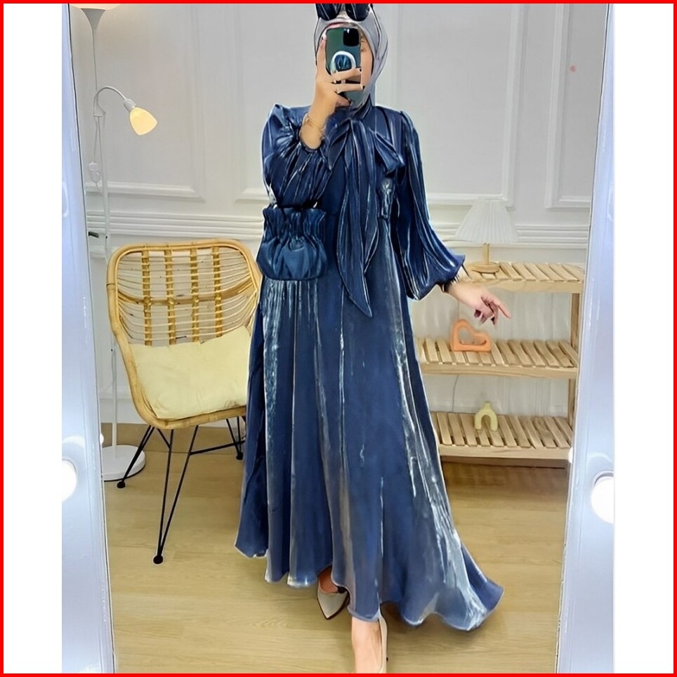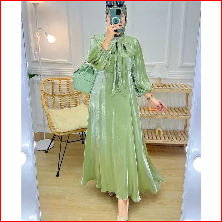 Dres Perempuan Hanum Dress Wanita Matt Santorini Shimer Dress Wanita Bahan Mengkilap Fashion Terbaru Bybilacollection Te