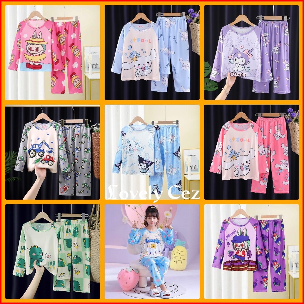 Piyama Anak Perempuan Laki Laki Lucu Import Cinamon Dino Labubu Baju Tidur Anak Perempuan