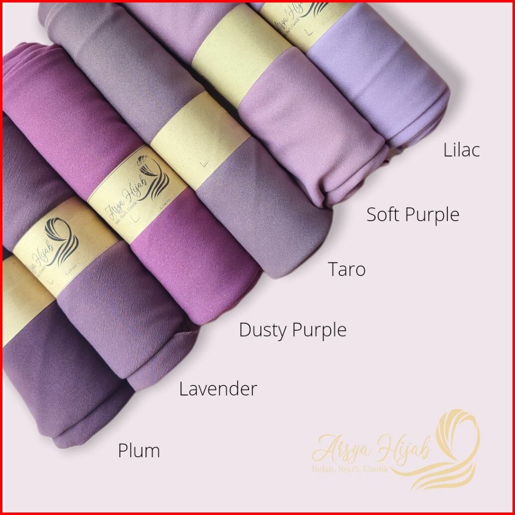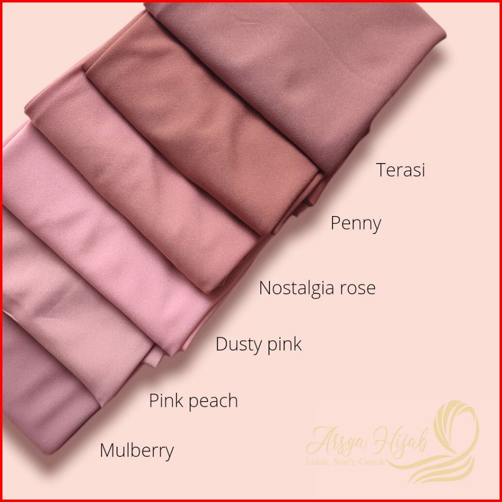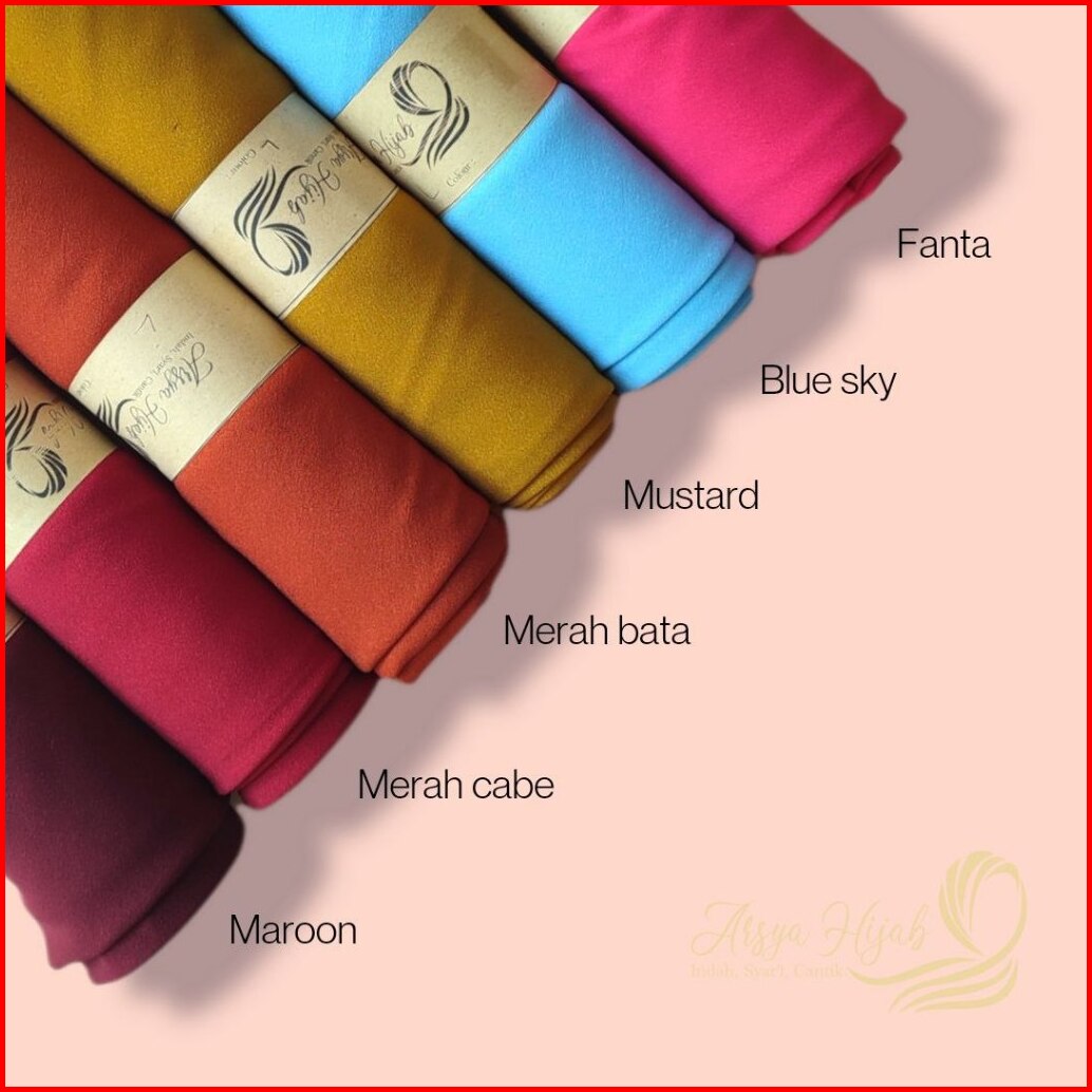 Hitam, Putih, Navy, Silver, wardah, nostalgia rose, Putih tulang, Mustard, merah cabe, Maroon, mulberry, Olive, Matcha, Coksu, Cinnamond, Blue Black, Denim, Taro, Tan, Merah bata, Botol, Grey, Soft purple, Dusty purple, Hijau Tua, Penny, Dusty Pink, Cream, Dark grey, Caramel, Soft milo, Blue sky, Pramuka, Mocca, Lilac, Lime, Pink Peach, Lavender, 8 tahun, Walnut, Pink salem, Khaki, merah bendera, Plum, Fanta